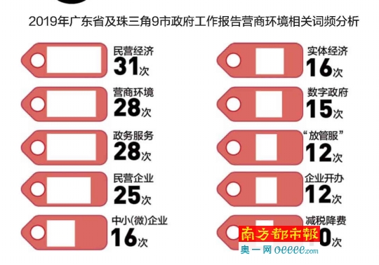 多份报告提出,2019年要加强“服务型政府”建设,政府主动为企业提供服务。广东省将加强经常性规范化政企沟通,继续办好“粤商·省长面对面协商座谈会”,推广领导干部挂钩服务企业制度,构建亲清新型政商关系。广州和深圳均提出,“满腔热情、积极主动”做好企业服务。
