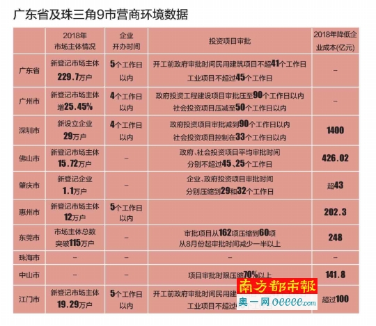数据显示,广东省的企业开办时间压缩至5个工作日以内,新登记各类市场主体229.7万户、总量达1146万户;广州、深圳的企业开办时间均压缩至4个工作日以内,领先全省水平。其中,广州市去年开辟工商登记快捷通道,办理工商执照最快一天、立等可取。