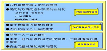 福冈信息化,对于电子政务的含义有一个合理的解释。并不像一般人想象的那样,政府机关对各种日常事务从手工处理变为电脑处理就是电子政务,这只是实现电子政务的基本要求。