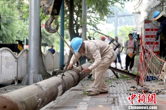 国网三明供电公司将“e三明”APP上群众所反映的影响路人出行的路边电杆拆除。 吴学生 摄