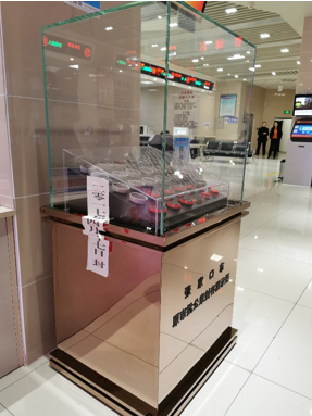张家口市审批大厅内的“原审批公章封存展示柜”见证了政务服务改革的变化。人民网 王仁宏摄