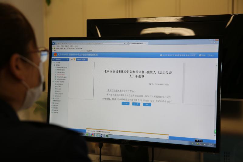 17日一早,防疫物资支援企业北京九隆伟业商务服务有限公司在海淀区政务服务中心领取了崭新的营业执照,成为海淀区首户享受北京市市场主体登记告知承诺制度改革红利的企业。在此新政下,企业申请营业执照各类登记时,在做出信用承诺后,现场可获“即时审批通过”,全程体验营商环境改革下的“海淀秒批速度”。