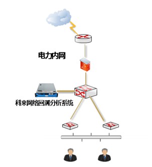 某电力咨询院每天8点到9点之间与总部开视频会议,双方图像出现马赛克,严重时出现黑屏造成会议无法正常进行,严重影响了正常办公。此故障持续已有3年,网管通过各手段排查,但一直没有找到问题的根本原因。近日,部署科来网络回溯分析系统对内网核心交换机总出口的流量进行了7×24小时监控,并通过回溯分析系统提取出问题时段的通信数据,我们找到了导致用户视频会议马赛克的主要原因。用户的网络环境示意图如下: