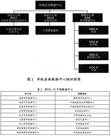 全市层面的数据中心可分属三个数据中心群:SDC-1市级各委办局信息中心、SDC-2市场各行业、WDC世界数据中心(见图2)。SDC-1下包含各区级委办局信息中心,SDC-2下包含政策形势、上海产业、上海企业、上海经验、上海人物、上海招商、上海竞争力等目录,涉及宏观综合数据、经济中心数据、金融中心数据、贸易中心数据、航运中心数据、经济转型数据、能源环保数据等不同指标数据。与世界数据中心(WDC)合作打开国际性数据合作方向。主要包括:WDC-A美国、WDC-B前苏联、WDC-C欧洲和日本、WDC-D中国。目前,中国的数据中心主要成立九个分中心(见表2)。数据中心能更好地打开政府各部门间、政府与市民间的边界,提高各机构协同办公效率和为民办事效率,同时提升政府社会治理能力和公共服务能力。在城市管理和服务的过程中,使已有数据透明化,使数据的提供方和数据的需求方有效对接找到有效途径。