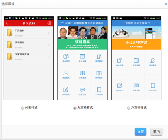 首页提供列表式、六宫格、九宫格多种版式,每个栏目都可以根据会议实际用途自定义类型,无论是图文、文件、外链还是文件夹、互动交流,全方位满足会议所有信息需求,并可根据栏目内容自定义图标,生成独一无二个性化应用,这些栏目设置功能强大、操作简单只需要点击鼠标即可实现。