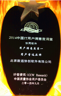 近日,由中国权威质量监督机构——中国质量协会用户委员会、工业和信息化部电子科学技术情报研究所、国内权威ICT研究咨询机构——计世资讯(CCW Research)联合公布的“2014中国IT用户满意度调研”结果显示,致远软件凭借在中国协同OA软件领域的先进理念、过硬产品、优质服务,连续六年蝉联中国协同软件 “用户满意度第一”和“用户首选品牌”两项重大殊荣。同时获得其他领域用户满意度第一的企业还包括IBM、HP、联想、用友等国际国内知名IT企业。加之年初由中国另一家著名的ICT研究咨询机构——赛迪顾问(CCID)发布的《2013-2014中国办公协同软件市场研究年度报告》中显示的致远软件连续九年获得协同OA软件市场占有率第一的结论,充分显示了致远软件在产品研发、市场营销、客户服务这3个维度,均获得了行业和社会的最高认同,其综合实力在中国协同OA管理软件领域中处于绝对的行业领导者地位!