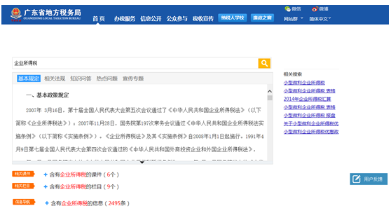 二是以搜索引擎为中心构造内容访问新模式,广东地税网站实现了应用模式从传统的栏目导航向搜索引导式转变,充分吸收互联网搜索技术的应用经验,对搜索结果实现二次聚合,帮助用户在海量信息中实现快速定位。