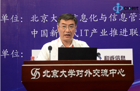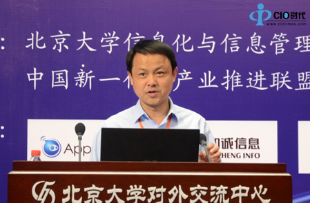北京大学信息化与信息管理研究中心主任王益明先生代表主办方致辞,首先他非常感谢各位嘉宾的到来,他还提到:研究中心自成立以来,在电子政务领域也参与过智慧城市、电子政务顶层设计、政府云计算中心等相关的课题和项目,而今天的论坛则为大家搭建产学研用的交流平台,希望大家有所收获!