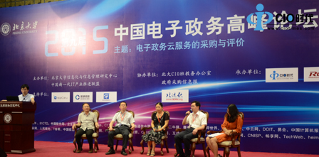 上午的论坛活动由北京大学信息化与信息管理研究中心秘书长姚乐先生主持,他首先介绍了出席本次活动的各位嘉宾,并提到:中国政府正推进向社会购买服务转型和全球IT产业链向分布式云计算模式转型,两大驱动力正使政府购买云服务成为大势所趋。