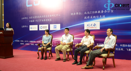 上午论坛的最后环节为主题对话,对话主题为:政府云服务与服务模式创新,其中两个议题为:1.政府购买云服务的策略与方法;2.基于云计算的服务模式创新。论坛对话由北京大学信息化与信息管理研究中心秘书长姚乐先生主持,国家信息资源管理北京研究基地主任赖茂生、武汉市硚口区统计局局长易鹏、政府采购信息报社社长刘亚利、北京市海淀区经信办主任何建吾、中国电子技术标准化研究院高工杨瑛参与了对话环节的讨论。各位嘉宾从理论到实践、从高层到基层谈了对于政府云服务模式创新的独到见解,获得了大家热烈的掌声。