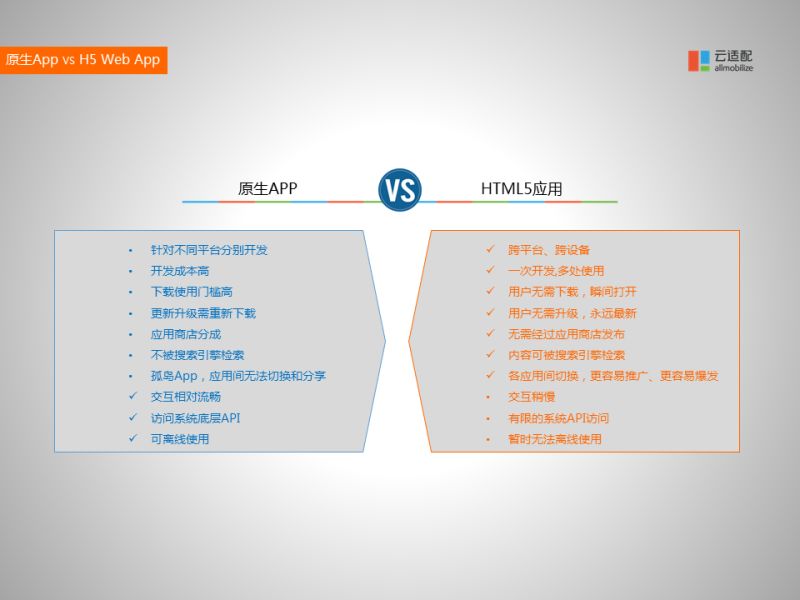 第二是用户的使用门槛HTML5的要低很多。大家都知道APP是需要去应用商店下载安装的,HTML5只需要点开一个网址就能使用。