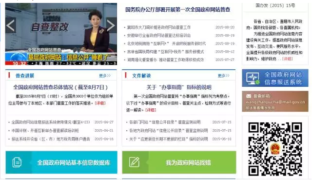 (栏目网址:http://www.gov.cn/wzpc/2015/;或在百度中搜索“全国政府网站普查专题”)