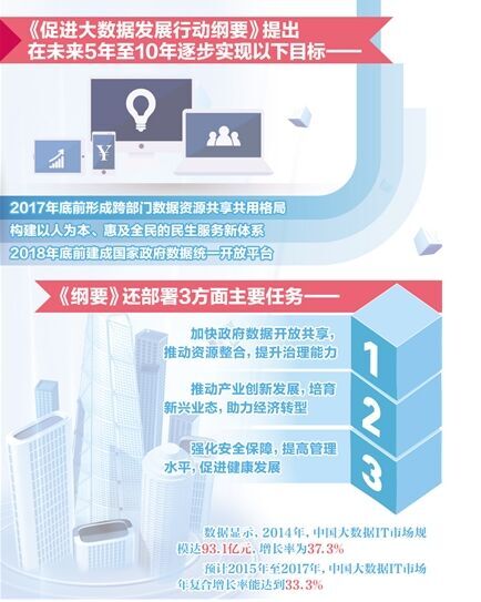 近日,国务院印发《促进大数据发展行动纲要》,提出要全面推进大数据发展和应用,加快政府数据开放共享,深化大数据在各行业创新应用,通过建设数据强国,提升政府治理能力,推动经济转型升级。此外,《纲要》还提出,要在2017年底前形成跨部门数据资源共享共用格局,在2018年底前建成国家政府数据统一开放平台。