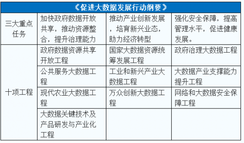 根据《纲要》,到2020年,我国将形成一批具有国际竞争力的大数据处理、分析、可视化软件和硬件支撑平台等产品;并且培育10家国际领先的大数据核心龙头企业,500家大数据应用、服务和产品制造企业。