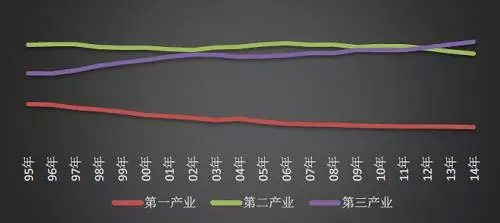 图 1 1995-2014年我国GDP三次产业构成