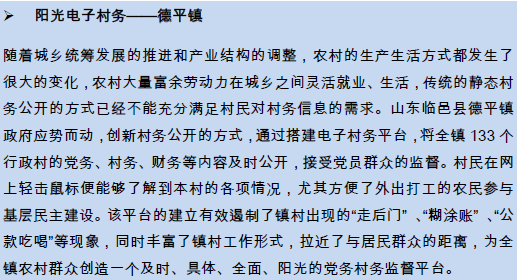 随着互联网在农村的日益普及,村民通过电脑、手机上网获取信息已逐渐成为常态。面对新形势和新环境,基层政府也开始积极探索电子村务建设,基于互联网构建农村公共服务平台,推动村务公开、网上办事并和村民在线进行互动交流,从而打造惠农利农的阳光新窗口。实行电子村务后,村民通过互联网不仅可以在第一时间了解村里的政务、财务等相关信息,而且还能及时地反映自己的诉求,为农村发展建言献策,基层治理逐渐由单向度转为双向度、多向度,农村的民主自治建设能力不断得以加强。