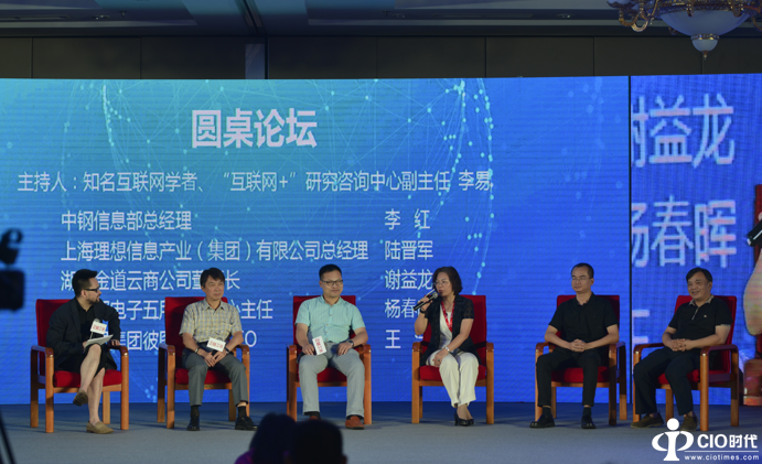 紧接着,由知名互联网学者、“互联网+”研究咨询中心副主任李易主持了本次的圆桌论坛活动。出席圆桌论坛的对话嘉宾为:中国钢铁集团信息化部总经理李红、苏州盖睿科技董事长杨豪放、上海理想信息产业集团总经理陆晋军、湖南金道云商公司谢益龙、工信部电子五所软件中心主任杨春晖、保千里集团彼图恩科技CEO王浩。大家纷纷从自身的角度出发,就电子政务、社保、电信、网络安全、实体经济、人工智能等当下热点话题,各抒己见,把论坛活动的气氛推向高潮。