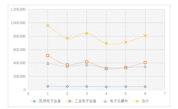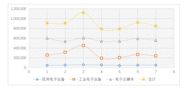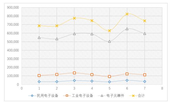 图1 2016年1-7月电子信息产业产值(单位:百万日元)