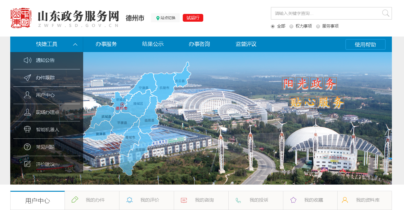 日前,全新打造的德州市政务服务网暨网上办事大厅(http://dzzwfw.sd.gov.cn)开始上线试运行,企业和个人均可登录德州市政务服务网查找所需的行政服务与信息,实现各类事项网上办理及结果反馈,体验到方便、快捷、高效、规范的全天候、“一站式”网上办事。