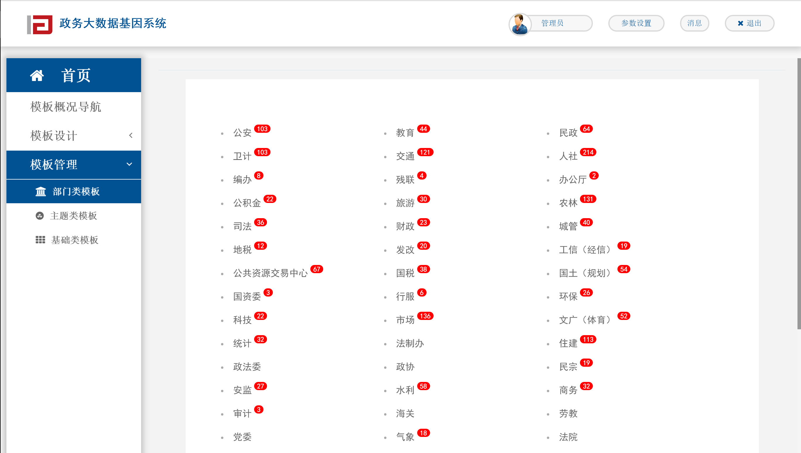 数据基因系统对比筛选出城市核心业务部门的核心业务的信息资源建立整个信息资源体系建设的模板库,通过模板库城市各单位可直接查阅相关数据元、信息资源模板,以直接沿用或是自定义修改的方式对模板进行选择性的编目,达到各部门政务信息资源快速梳理、信息资源体系快速架构的目标。