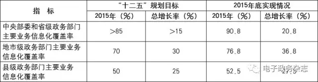 表1 “十二五”末期政务业务信息化覆盖率及增长率[1]