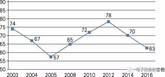图1 中国电子政务发展水平在全球中的排名变化情况
