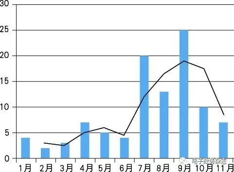 图1 2016年1-11月全国热点舆情事件发展趋势(TOP100)
