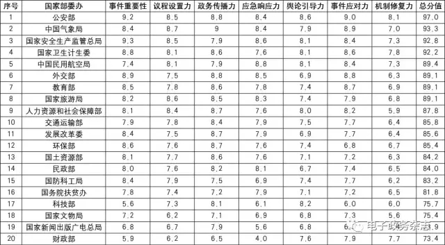 表3 国家部委办政务舆情回应指数排行榜TOP20