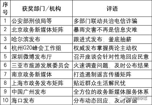 2016年,全国各地在政务舆情回应方面取得了长足的进步,表5中各部门或新媒体矩阵,不少举措和回应案例可圈可点。试以公安部等联动处置和解决电信诈骗系列案件为例,可以看出,政务舆情回应需要政府综合治理,更需要企业、社会和民众的广泛支持与参与。