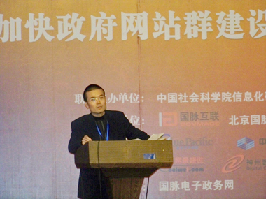 国脉电子政务网讯 11月27日上午,第三届(2008)政府网站群建设与运营高峰论坛在北京梅地亚中心隆重举行。本次会议由中国社会科学院信息化研究中心和国脉互联政府网站评测研究中心联合主办,以“加快政府网站群建设 提升电子政务绩效”为主题,旨在共同交流政府网站群的建设与运营经验,探索如何构建以人为本的服务型政府网站“金名片”。国家信息中心信息化研究部主任助理于施洋主持了会议,中央各部委、各省市地区政府信息中心领导、管理者及网站运营负责人、电子政务服务供应商、专业媒体人士等220余人参会。
