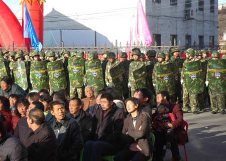 红网12月9日讯 “吓得我不能动弹了,村委会换届选举竟然动用大批警力武装护航。”8日上午,网友“休闲0”在红网论坛发帖爆料,称在网上看到有人发的一组照片,一边是穿着普通的村民、一边是手持盾牌、警棍全副武装的警察,拍照人述说这是5日上午发生在山西长治县西火镇某村的雷人一幕,“几十名全副武装的‘防暴队员’在该村一村委会候选人的指挥下,威严地把村民们包围在大院里,名曰:‘维持秩序’。”