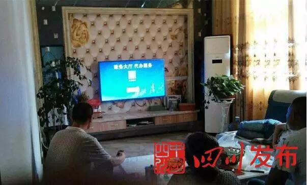 △邛崃群众在家使用电视机机顶盒里的互动电视端政府门户网站预约上门办事。