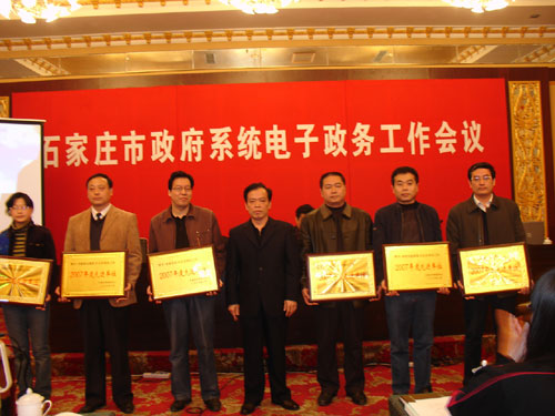 3月19日上午,市信息中心在银河宾馆召开了全市政府系统电子政务会议,参加会议的有,各县(市)区和市政府各部门、有关单位负责信息化工作的主任、处(科长)及技术人员,共计200余人。会议由市政府副秘书长、市信息中心主任范宪林同志主持,会上,市信息中心副主任黄德伟同志宣读了《2007年度市政府系统电子政务工作先进个人和先进单位的通报》,并举行了颁奖仪式;市信息中心网站处处长王梅林同志就2007年度石家庄市政府网站测评情况进行了说明,并发布测评结果;市信息中心副主任安才良同志总结了2007年全市电子政务工作,部署了2008年全市电子政务工作和任务;市信息中心总工程师于惠参加了会议。