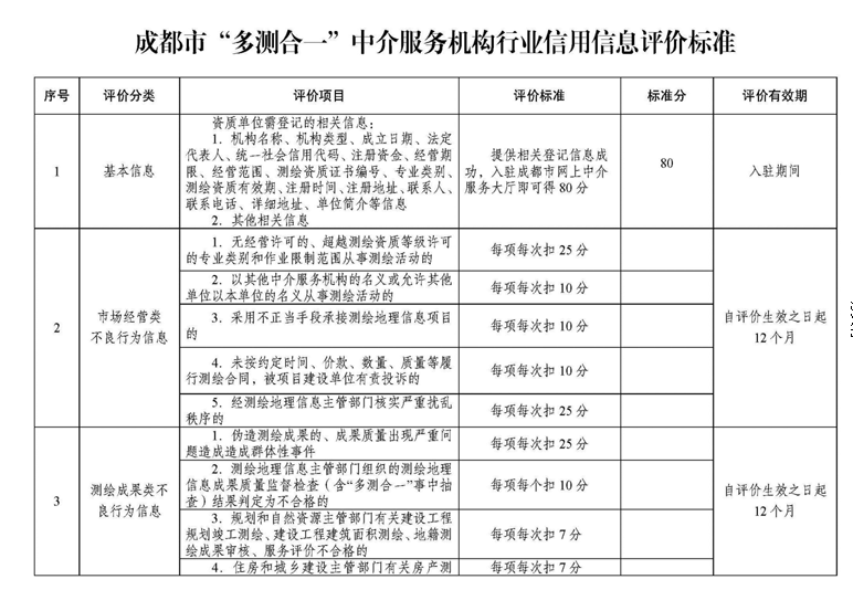 附件:成都市"多测合一"中介服务机构行业信用信息评价标准