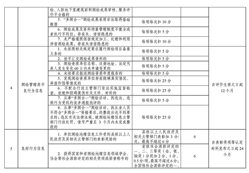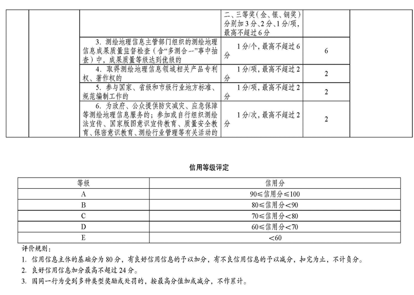 (五)E等信用是信用度不诚信等级,属最低等级(0≤信用分<60)。表现为中介服务机构管理混乱,有违法违规测绘行为,社会信用度低,履约意识和能力很差,测绘地理信息产品质量和产品后续支持保障能力差。