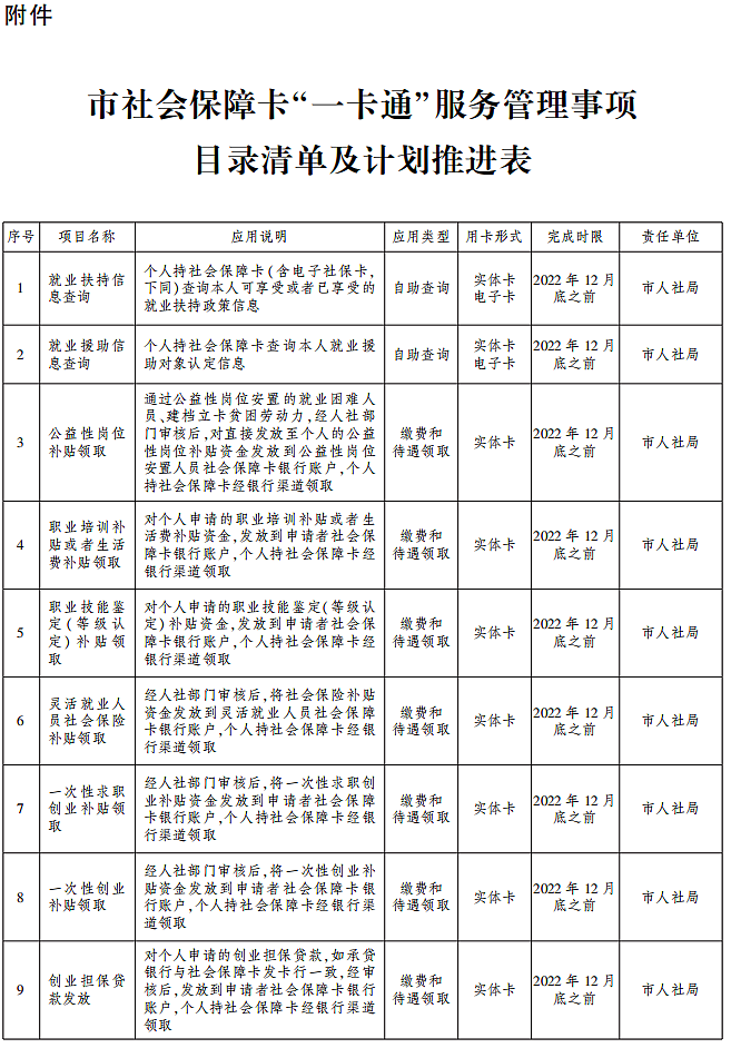 附件:市社会保障卡“一卡通”服务管理事项目录清单及计划推进表附件
