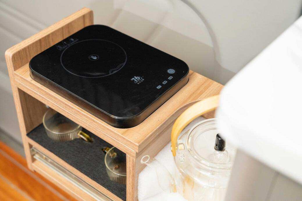 上汽大通MAXUS V90露营版后厢空间最 高容积可达8.2m³,可容纳下1张蛋卷桌、2个收纳箱、3种风格置物架、4张蝴蝶椅等五花八门的露营装备,用户完全不用担心空间不够用。与此同时,V90露营版车内还采用了多功能储物柜设计,可将音箱、小夜灯等各种精贵小物品放进储物柜内,保存更稳妥。除此以外,上汽大通MAXUS V90露营版还可以满足用户的“口腹之欲”,不仅自带抽屉式电磁炉以供烹饪,甚至还为用户配备了配套的精致茶具,让用户在野外环境也能喝上一壶热茶。而且,因车内配备了清水/灰水箱,用户也无需担心在户外露营用水不方便。