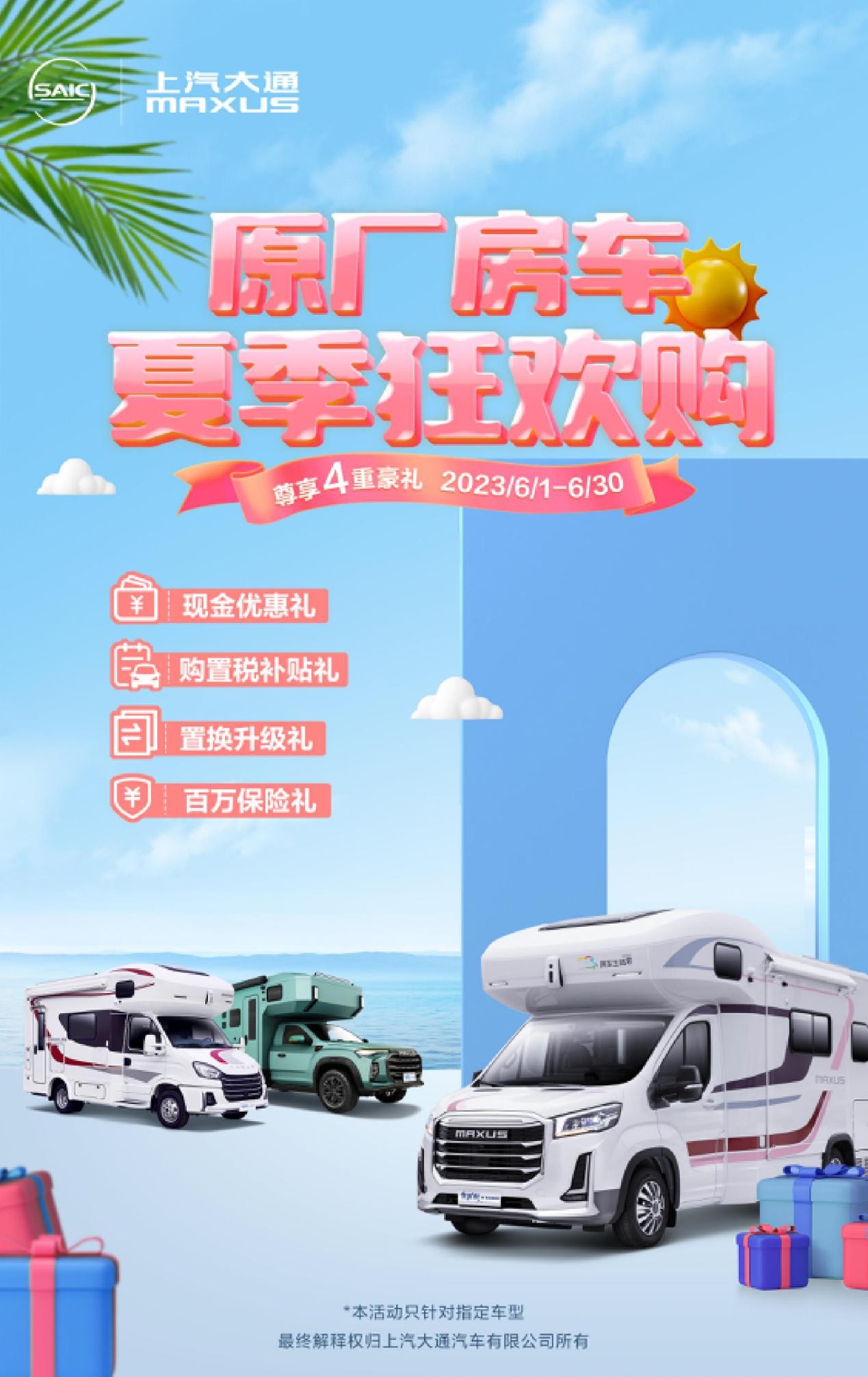 通过对比两款车型在安全和舒适方面的表现,大家不难理解为何比起宇通C530,全家出游房车推荐上汽大通MAXUS生活家H90了吧。毕竟更高的安全性与生活品质,才能让我们更全身心投入于旅程之中,体验不一样的风光。目前,原厂房车生活家H90定价55.98万元起,现在购买还可享4重豪礼:现金优惠礼、购置税补贴礼、置换升级礼、百万保险礼,感兴趣的消费者可尽快入手!当然,除了这款外,上汽大通MAXUS旗下原厂房车车型众多,价格跨度大,原厂自行式房车价格区间从19.98W至258W元不等,B型C型各类布局都可以自行选择。感兴趣的消费者可关注微信公众号“上汽大通MAXUS房车”获取丰富原厂房车一手资讯,同时搜索“上汽大通原厂房车”微信小程序,让看车、购车、玩车一键达成!