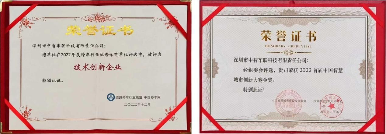 基于新一代ETC及定位读卡的城市智慧停车一卡通行系统细分领域2022年国内市场占有率达到11.13%,并获得《品牌中国》栏目重点推荐品牌荣誉。中智车联还先后荣获道路停车行业联盟优秀智慧停车企业、技术创新企业,中国智慧城市创新大赛金奖及2023中国智慧城市建设十周年推荐品牌金奖等。
