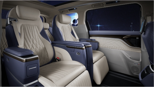 更值得一提的是,有着“移动豪华宫殿”之称的上汽大通MAXUS G90,内部空间的布局和配置更是尽显高端。其二排搭配了沉浸式太空舱豪华座椅,支持高清触控式椅背多功能屏,可丝滑切换不同的VIP场景模式,满足精英人士的多种需求。三排配备了独立豪华电动座椅,支持加热、通风、按摩腿托等多种功能,并配备超大后排车窗,让商务人士们丝毫不会觉得狭窄和压抑。同时还有一排三联屏、全车十屏联动,DMS、OMS、L2++级高阶智能驾驶辅助系统等高端配置,全方位提升用户的出行体验。