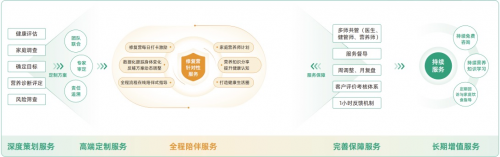 全程陪伴服务:营养师会进行全程陪伴式服务,全程跟进、随时反馈,并根据数字化的健康数据分析,动态调整方案,帮助客户高质量执行;